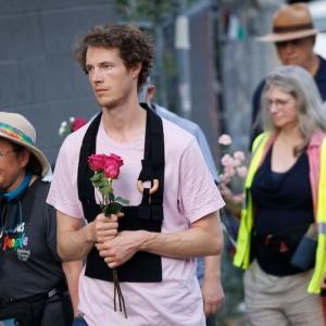 Protests against ICE activities in Portland continue. An interfaith solidarity march, organized by churches in the area, marched silently to and past the ICE building on Southwest Macadam Avenue, lay flowers, and then gathered for a brief prayer service on Aug. 25, 2025. Credit: John Rudoff/Sipa USA via Reuters Connect