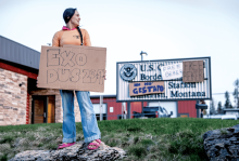 Lena Camero was one of 40 people protesting the detention of Beker Rengifo del Castillo at the U.S. Customs and Border Patrol Station in Whitefish, Mont., on April 24, 2025. / Hunter D'Antuono / Flathead Beacon