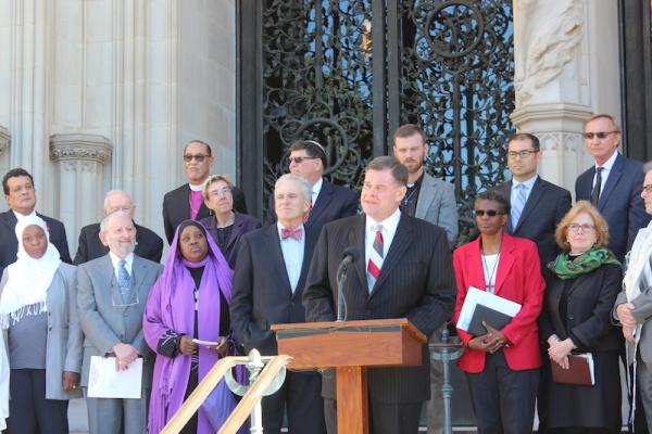 Texas Pastor Bob Roberts and Virginia Imam Mohamed Magid joined dozens of other religious leaders in prayer at the Washington National Cathedral before signing a pledge to denounce religious bigotry and asking elected officials and presidential candidates to join them.