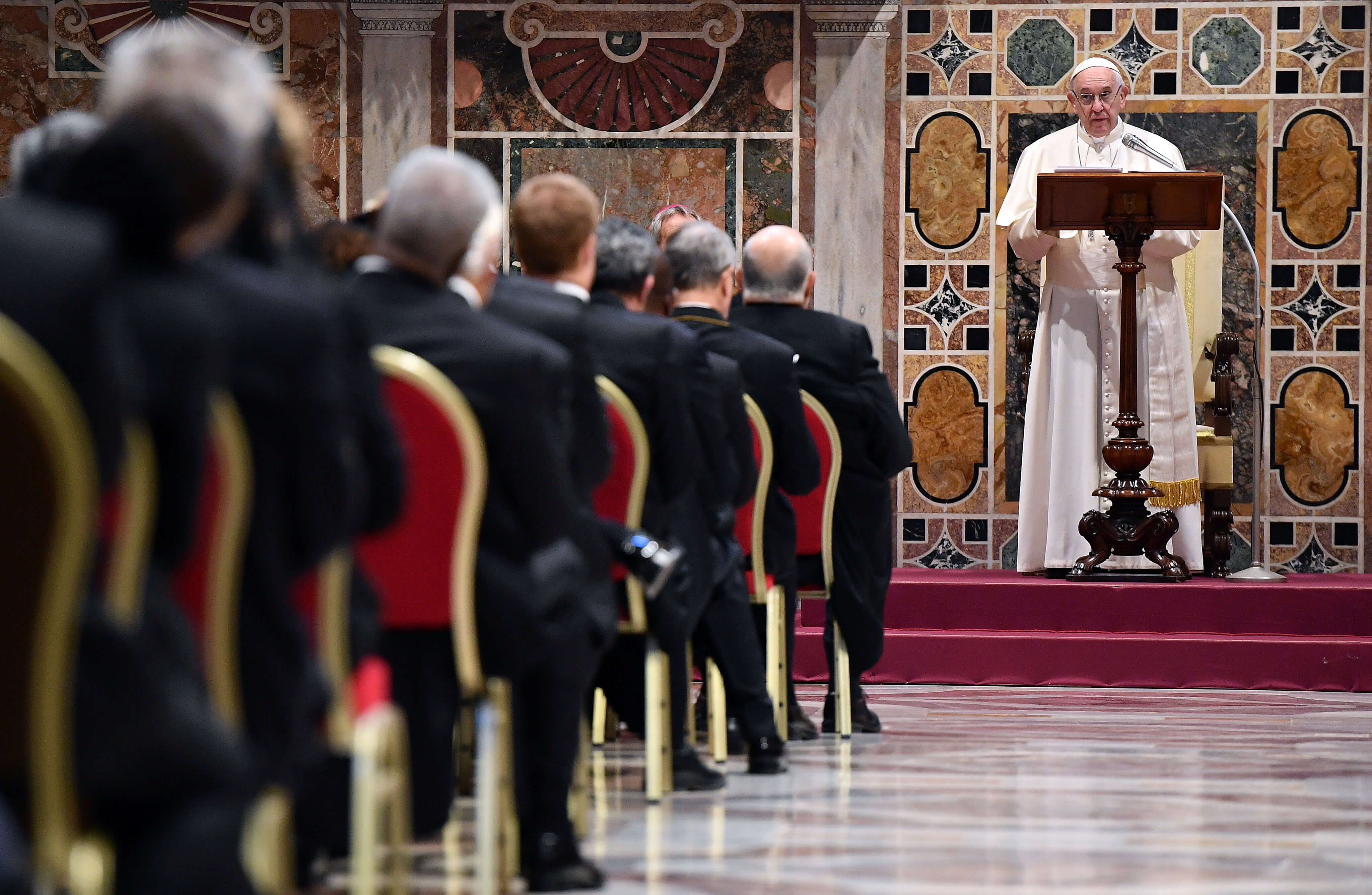 Pope Francis attends an audience with members of the Diplomatic Corps at the Vatican, Jan. 7, 2019. Ettore Ferrari/Pool vie REUTERS