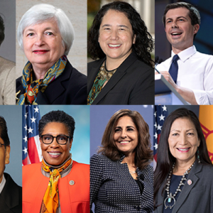 Some of the leaders Joe Biden has selected for his incoming Cabinet. Upper row, left to right: Linda Thomas-Greenfield, Janet Yellen, Isabel Guzman, Pete Buttigieg, Lloyd Austin. Lower row, left to right: Xavier Becerra, Marcia Fudge, Neera Tanden, Deb Haaland, and Michael Regan. Photos via Wikimedia Commons and courtesy images. Graphic by Jayne Marie Smith / Sojourners.