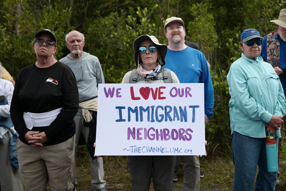 A weekly interfaith vigil continues in September 2025 outside the Alligator Alcatraz Immigration Detention Center after a federal appeals court temporarily blocked a court order that would have closed the facility. Lisette Morales/ZUMA Press Wire/dpa via Reuters Connect