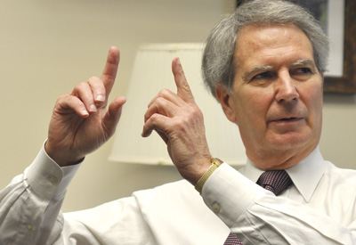 Rep. Walter B. Jones sits in his office in Washington, D.C., surrounded by photos and memorabilia of fallen U.S. soldiers. Though he voted in 2002 to authorize U.S. war against Iraq, the conservative Republican from North Carolina soon came to believe that the wars in Iraq and Afghanistan violated his Christian principles. Jones, who has become one of the wars' most outspoken critics, reached across the aisle to coauthor, with Rep. Jim McGovern (D-Mass.), the McGovern-Jones Amendment, introduced in July 2010, which calls for a clear timeline for the withdrawal of troops from Afghanistan. Sojourners editor-in-chief Jim Wallis talked with Jones this summer in his Capitol Hill office.
