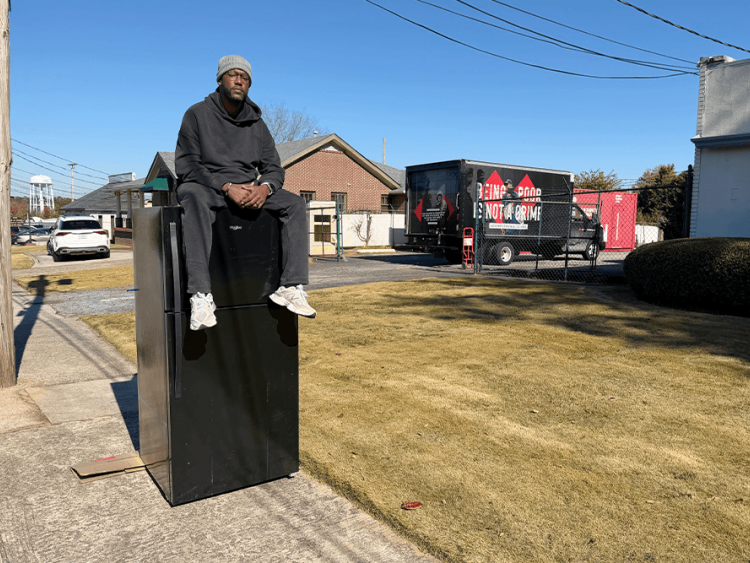 Terence Lester, founder and executive director of the nonprofit Love Beyond Walls, has sat on a refrigerator for over 60 hours.