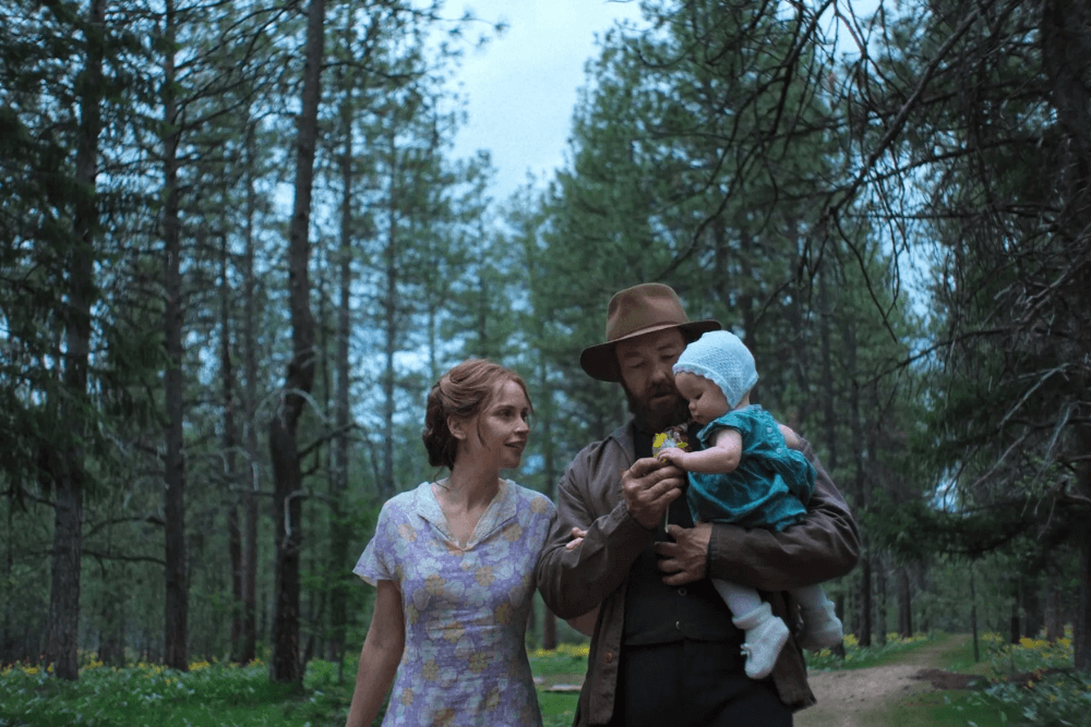 It’s not all misery and heartbreak, though. Train Dreams is a beautiful film, in both image and spirit, and for as many trials befall Grainier, there are just as many strange miracles. A Native American shopkeeper who shows up at Grainier’s lowest to offer a meal and sit in his pain. Three puppies who appear as companions out of the blue. A solitary forest surveyor who finds that her experiences and Grainier’s are strikingly alike. Grainier’s many precious stretches spent with his wife and daughter in the home they’ve created together, his daughter’s contagious delight and curiosity running wild in the fields and streams. Like a poem or a collection of memories, these experiences seem to exist all at once in the film, an effect that Bentley views as very intentional: “We all exist in this moment, but every other moment in our life also exists with us in this moment . . . And so [we were] trying to use the edits to suggest that, in a way. Kind of like, you’re carrying everything with you, and you don’t always realize the import of a specific moment in your life until later looking back on it.”
