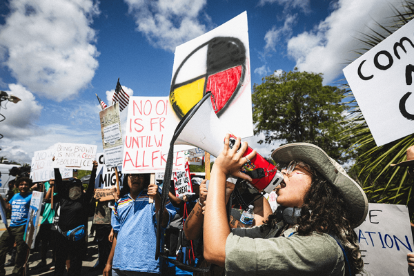 At one point the police said, “We wish there were more of you” and we said, “We do too! Maybe get on the other side of this thing and take the handcuffs off and kneel down in the Capitol with us.” And we’ve had similar conversations when we were arrested around gun violence. We were calling for a ban on assault rifles, and the police officers said to us, “We’re with you; those same guns take our lives too.”
