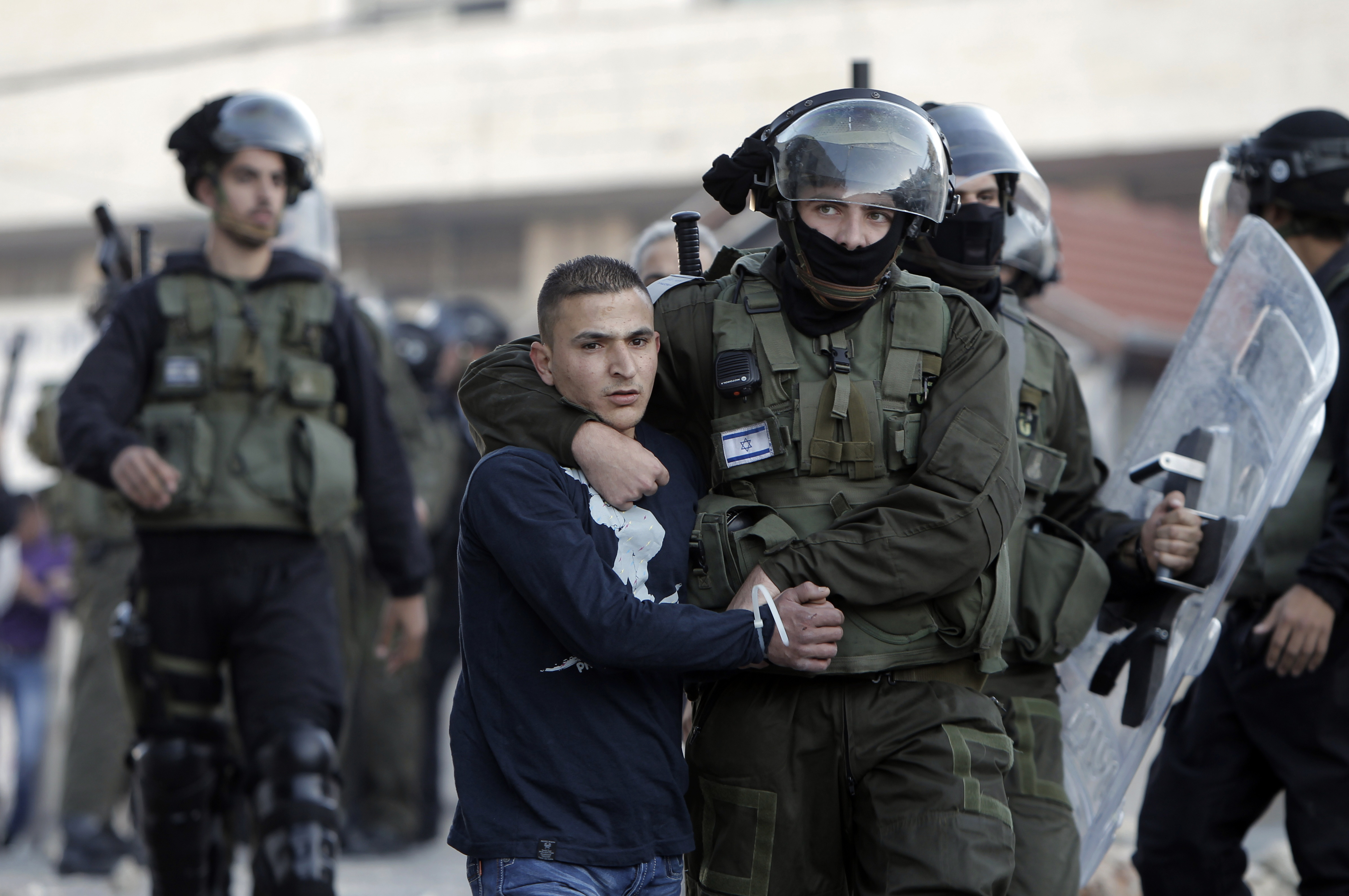 Israeli forces arrest a Palestinian youth during clashes in Arab Jerusalem Issawiya.AHMAD GHARABLI/AFP/Getty Images