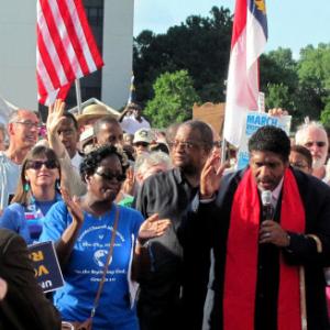 The Rev. William Barber, leader of North Carolina’s “Moral Monday” movement, which has long protested acts of the state’s conservative legislature, quoted Isaiah 10: “Woe to those who make unjust laws.”