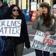 The mostly African-American throng — smaller than the thousands expected, due to the steady rain — heard from civic and religious leaders about key areas of concern: health care, voting rights, economic equality, and police brutality and reform.