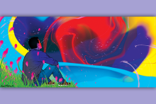 IMAGINE YOURSELF IN a darkened theater. At center stage sits a woman, child on her lap, both wrapped in tonal greys. A tiny stream of light falls from above. Off left, large animals shift their weight on floorboards, chuff-chuffing their breath; foreign tongues murmur them calm. Off right, the only sound is of metal rasps running repeatedly down the length of blades; random sparks flare off the cutting teeth. This is Epiphany. Everything is waiting to happen. We know the narrative detail: Mary and Jesus, a manger, the Magi’s star-trekking journey with camels and gifts to honor a “newborn king” (while Herod, like Pharaoh, plots a bloody offense). But Epiphany is a season for paradigm shifts. What if we scramble the details? Imagine this. Off left, the chuff-chuffing of foreign tongues come not from men calming beasts, but camels praying as they approach the child, the spiritual waterhole for the world. The camels have not brought kings or astrologers, but a guild of bakers, who extend platters of fresh bread toward the child. At center, the woman wrapped in a cloak of ultraviolet leans back on her stool: She has given birth to a star, filling them both with light. At her side stands a human child. He gazes off right. The sound of rasps and swords, boots and shouted commands fascinate him. Slowly, the child lets go his mother’s hand, relaxes his throat muscles, measures his breath. In a world of bread and circuses, he has made brothers of soldiers. He is a sword-swallower and eats their pain.