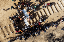 Several thousand people gathered inside and around the Nasser Hospital in Khan Younis in the southern Gaza Strip, awaiting the arrival of freed prisoners, with some waving Palestinian flags and others holding pictures of their relatives.